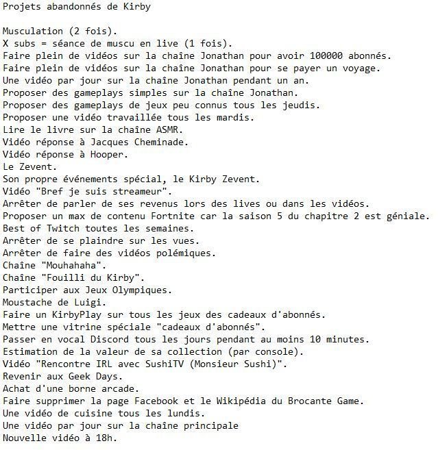 Un khey avait fait la liste de tout les projets abandonnés de Kirby. Je pensais avoir enregistré ce document mais je le retrouve plus, si quelqu'un pouvait nous le partager c'est intéressant. La liste est plutôt longue