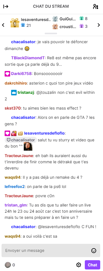 Ah ouais en plus une fois, je suis passé sur sa 3ᵉ chaine (qu'était bon faut pas se l'avouer) et je l'avais dit ''si t'arrêter de balancer des trucs sur les gens qui t'aiment pas, tu y arriveras mieux à avancer sur ta chaine, mais non monsieur préfère en remettre une couche en live...
