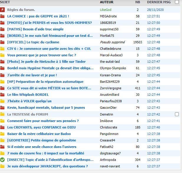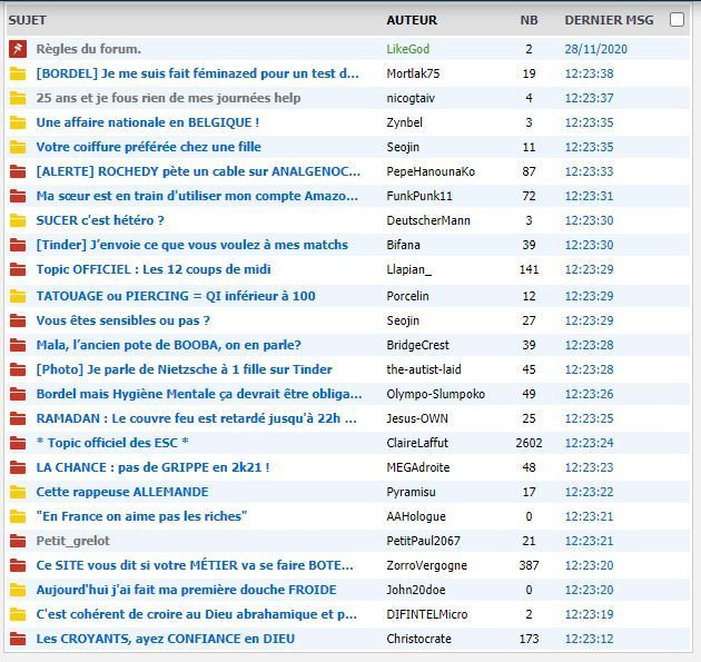 90*60*24 = 129600 topics à chier. Rester plus d'une 1h ici est nocif. Autant ouvrir un bouquin pour se cultiver, sortir dehors ou regarder la TV si vous voulez vous détendre