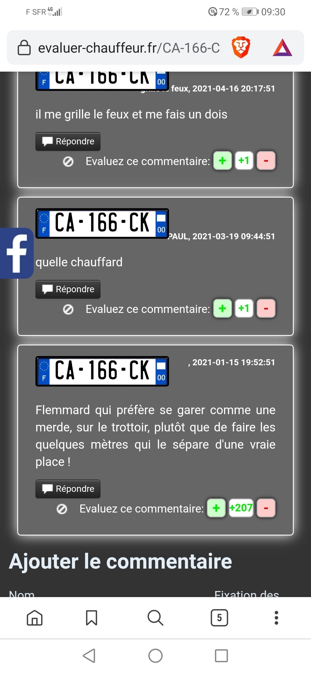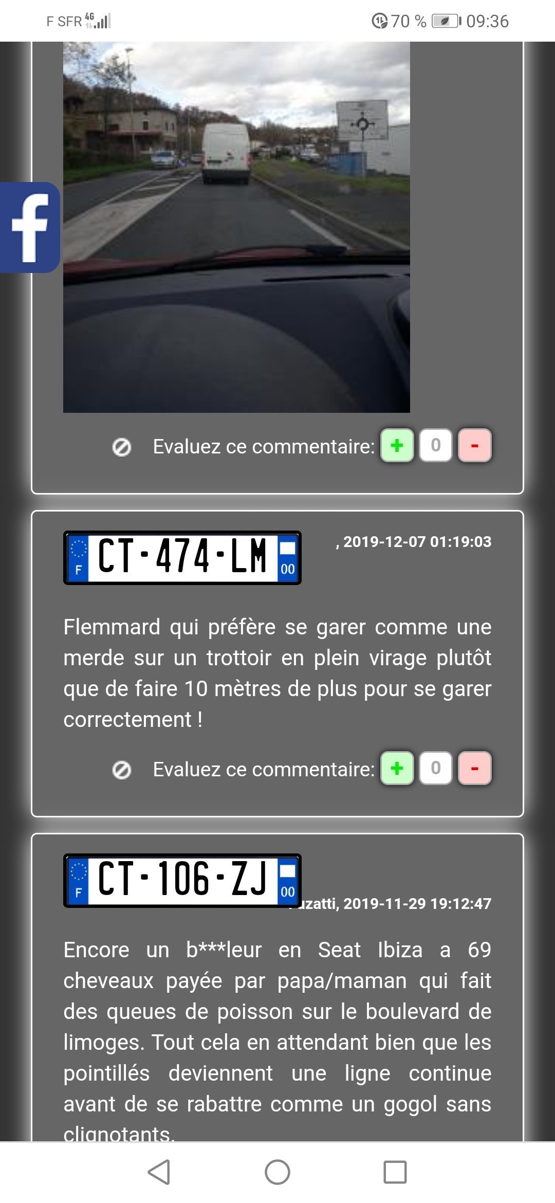 Venir se défouler sur internet en balançant des plaques et photos visages visibles parfoisTrois fois rien