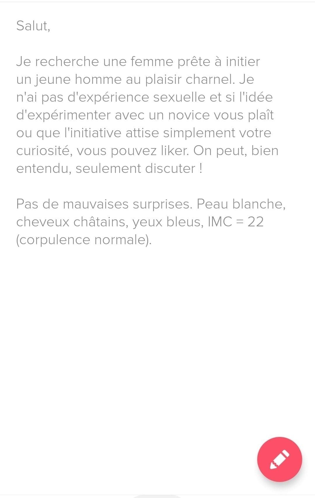 En réalité, il suffira de jouer carte sur table, voici ma bio Tinder :