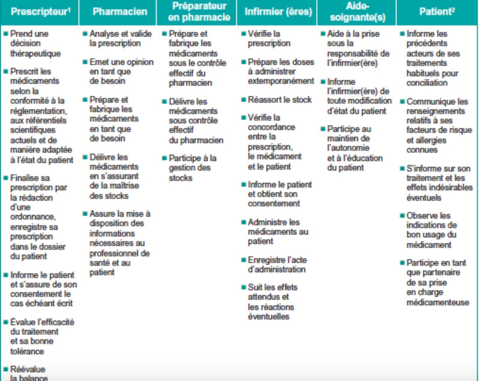 Mattez ce tableau décrivant le rôle de chaque acteur de santé, il parle de lui même :
