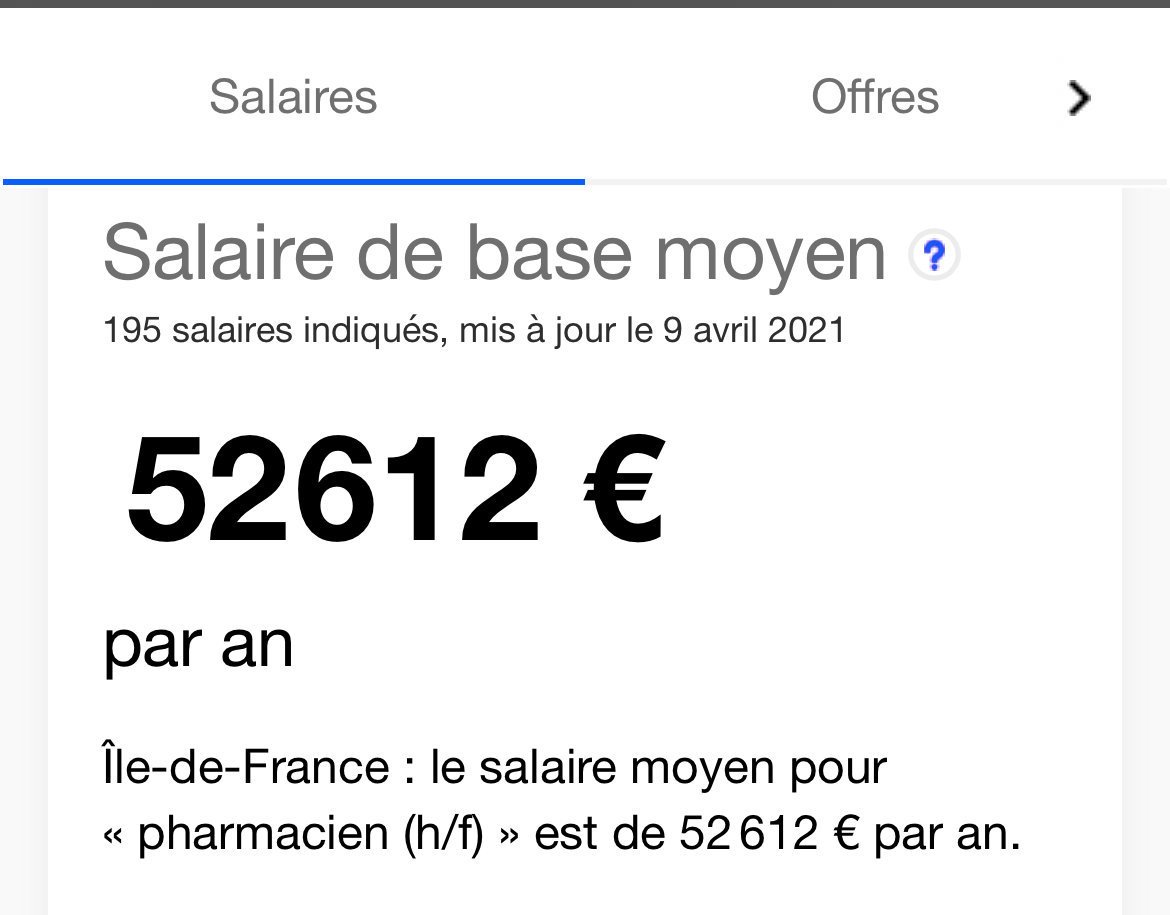 Tu arriveras à 5k en fin de carrière sans prise de tete et ça c'est le salaire MINIMALE, à Paris tu négocies bcp plus car le CA est énorme selon les pharmacies. Mon frere 2 de QI, Pharmacien à Paris, 3k5 net à 27ans en étant YESLife+ Beacoup de temps libre et 0 pression au travail.![]()