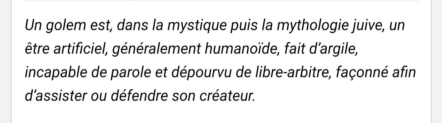 [18:57:37] <TmaxEnY2>Une créature en argile qui fait tout ce que son créateur lui dit de faire