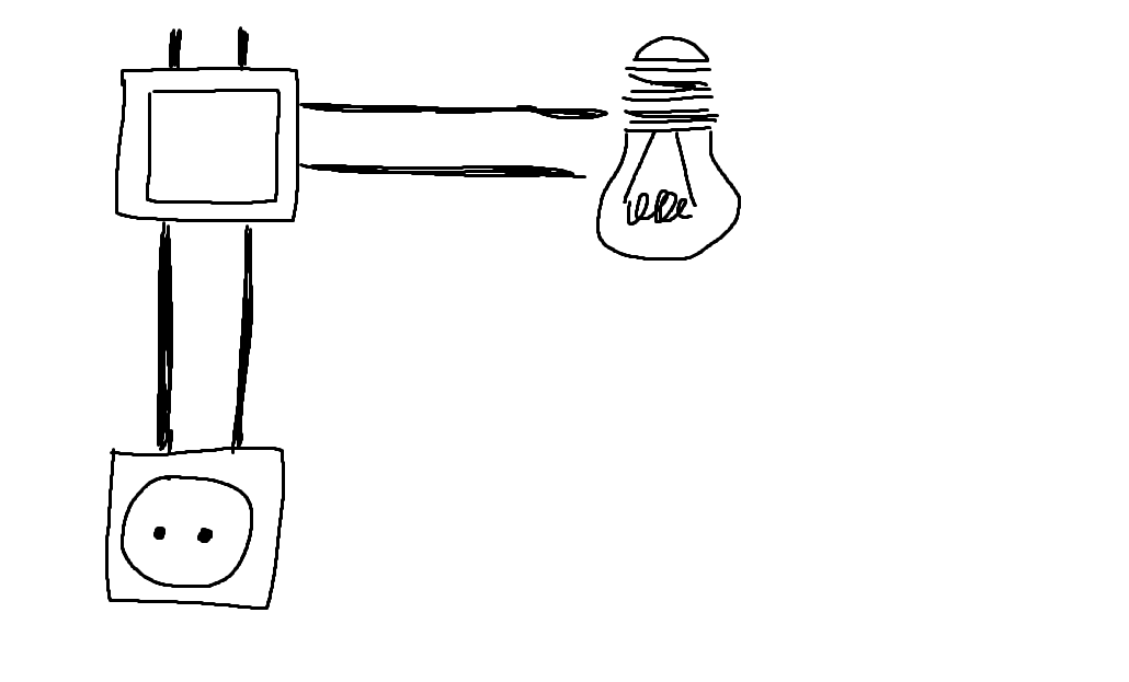 Ou alors tu fais l'inverse, genre la prise directement au secteur puis tu fais une "dérivation" avec ton interrupteur + ampoule
