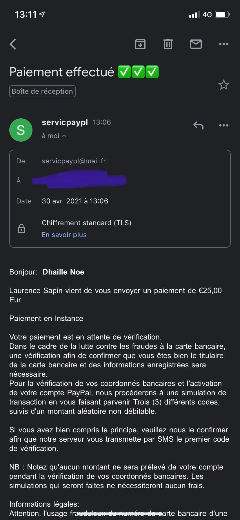 J’ai mis un maillot de foot à vendre sur LeBonCoin et une dame me l’a acheté hors service de paiement électronique du site et m’a contacté par mail pour un paiement Paypal et m’a demandé mes coordonnées mail et téléphone. Cependant le mail pour confirmer le virement me semble peu authentique pour une plateforme internationale. Quelqu’un peut me renseigner si possible ?