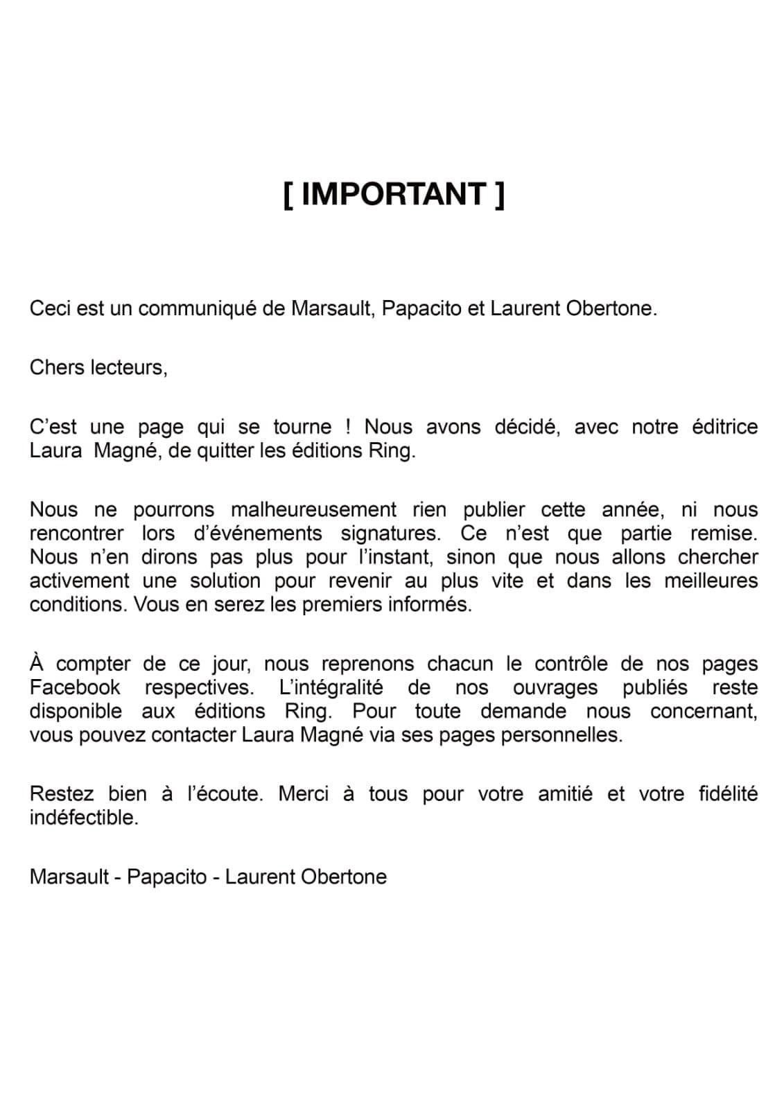 c'est terminé pour ring