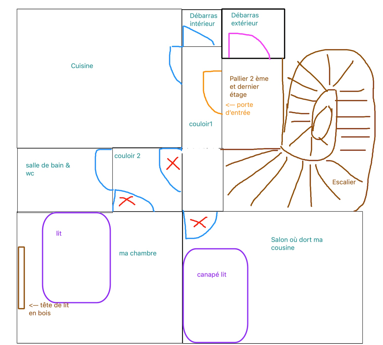 Alors déjà je vous mets un plan de mon appartement pour bien comprendre.