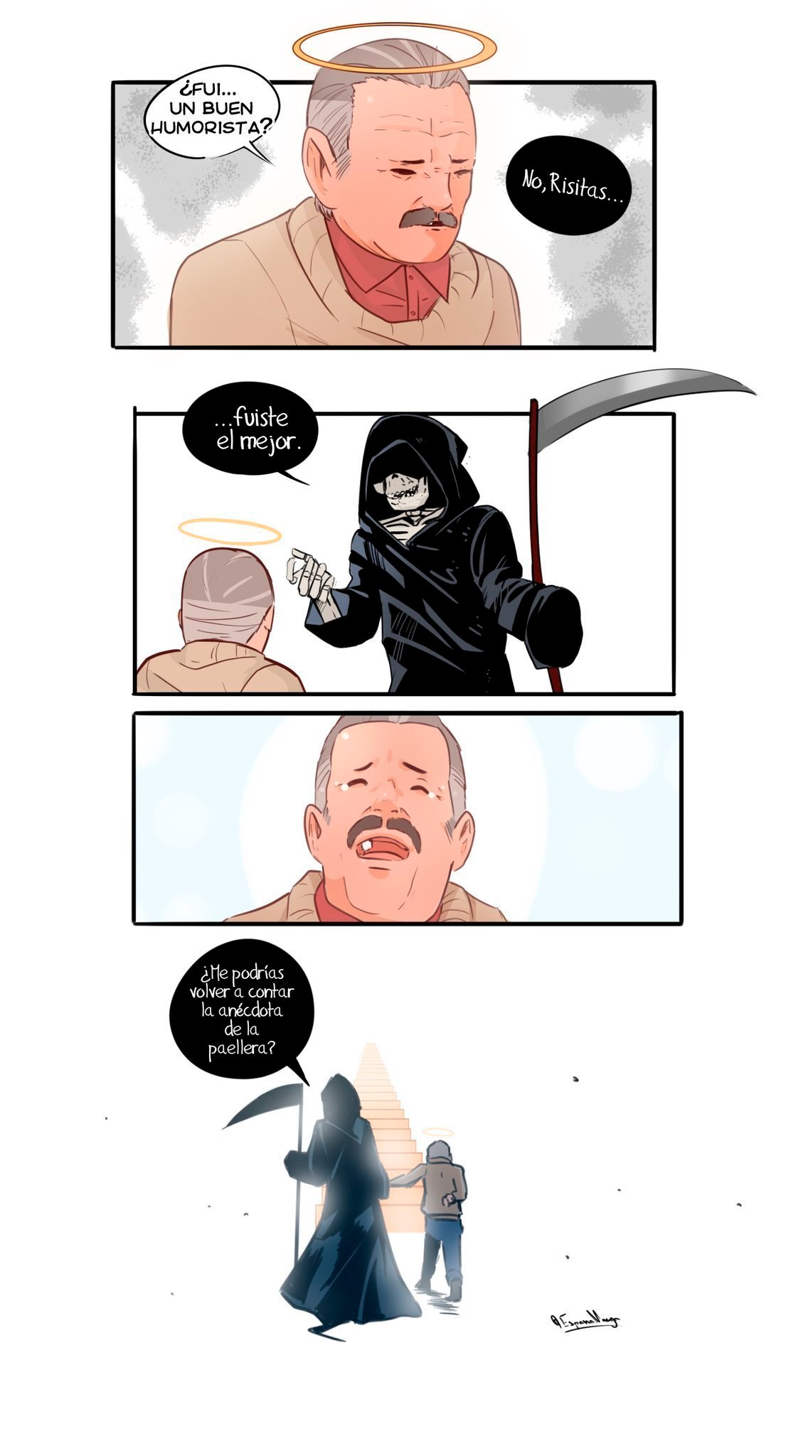 Étais-je un bon humoriste ?Non, Risitas......Vous étiez le meilleur.Pourriez-vous me raconter l'anecdote de la paellera ?
