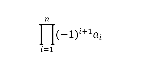 n pair : Dans un premier temps le produit de -a1 jusqu'à -a(n-2) en faisant le det par bloc sur la première ligne. Le nombre de moins est pair (car il y a (n-2) -1 et (n-2) est pair) donc ça revient à dire le produit de a1 jusqu'à a(n-2). Puis on finit avec le det de