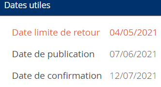 Date pour envoyer le dossier puis annonce des résultats et confirmation des choix