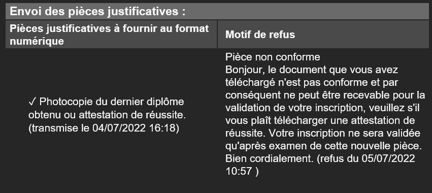 Enflure, on t'a demandé une attestation de réussite pas tes relevés de note. Bouge toi et fournis nous la pièce si non tu peux t'asseoir sur tes 600€.