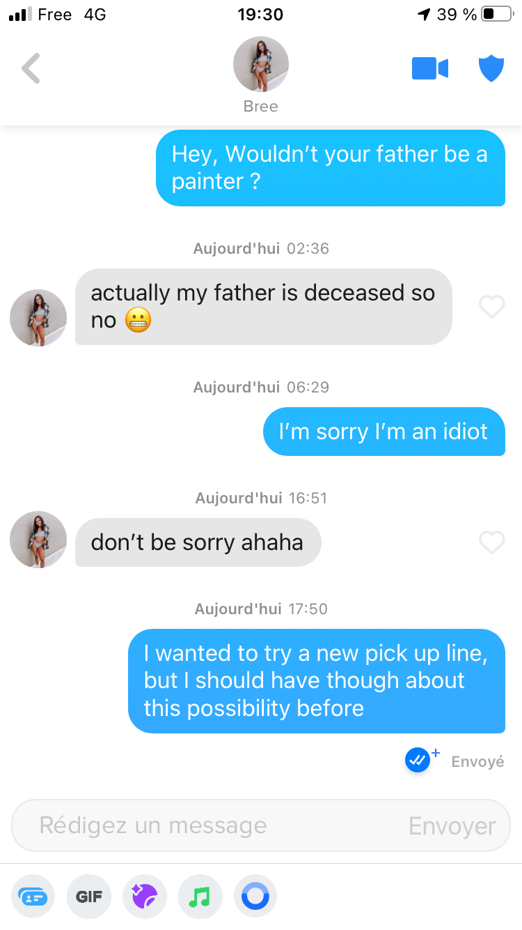 Le 05 mai 2021 à 19:32:48 : Petit update, elle m’a répondu Qu’en pense l’élite j’ai toujours mes chances ? J’essaie de faire le gentil mais ça fait peut être un peu trop zeta non ?