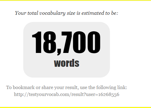 La majorité des mots du test se trouvent régulièrement dans des romans en anglais. Cependant, vu que je ne me souvenais pas de leur définition, je ne les ai pas cochés, donc j'ai aussi un doute