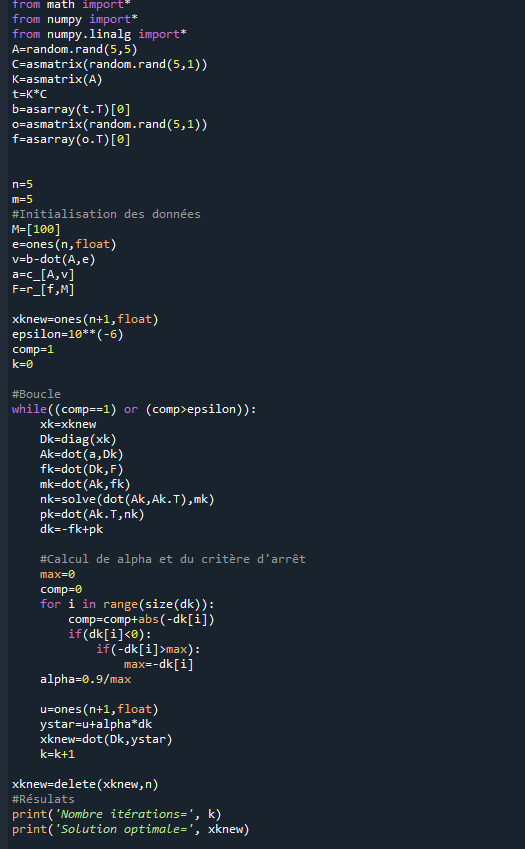c'est mon programme de méthode de points intérieurs (affine scaling)