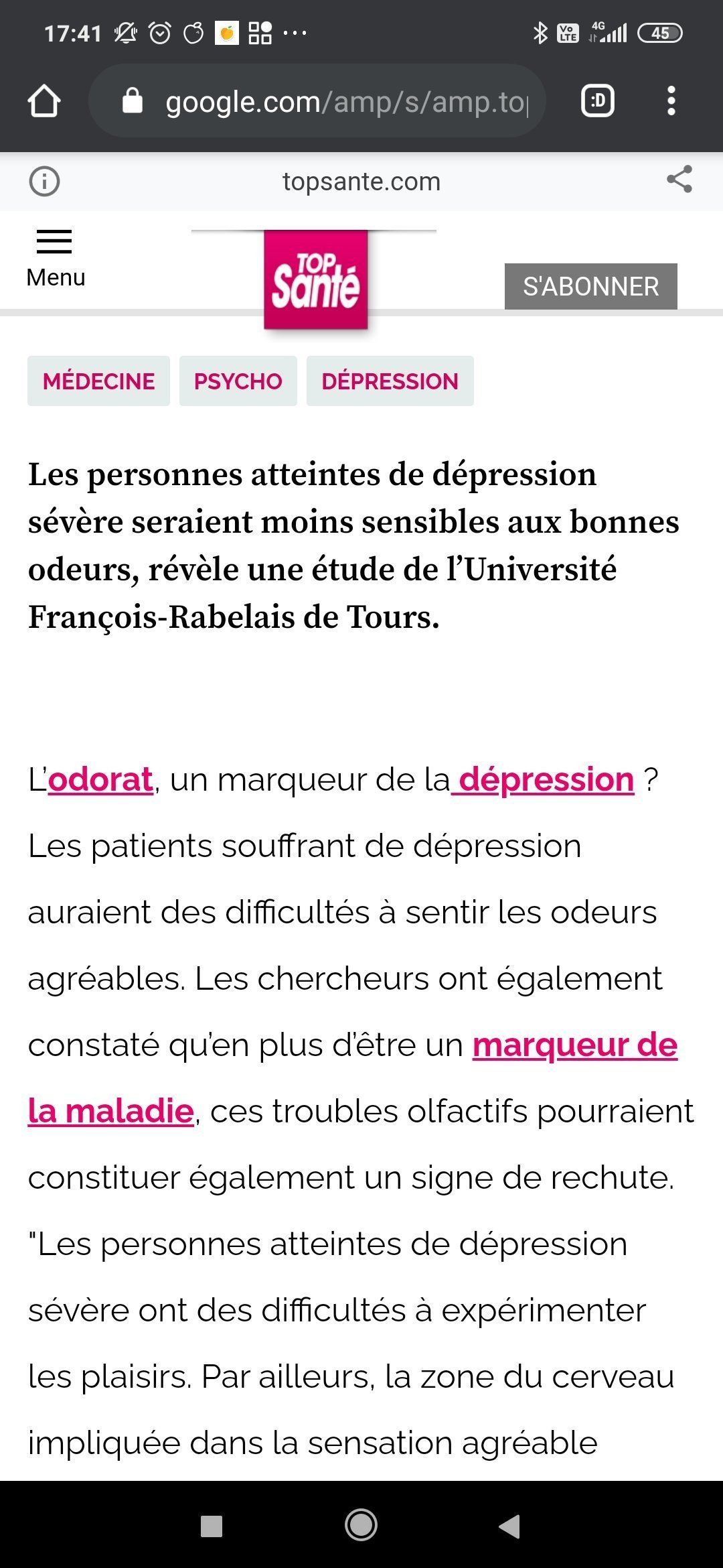 A la base la perte de l'odorat était un symptôme classique de la dépression
