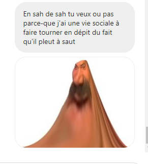 Elle a tenu longtemps en vrai tu dois être encore bg, dis lui ok c'est bon tu as passés les tests d'entrée félicitations, très rares sont celles qui arrivent à résister à la pression de mes stickers aussi longtemps. Quand dis-tu d'un date incessamment sous peu en dépit des conditions sanitairent ?