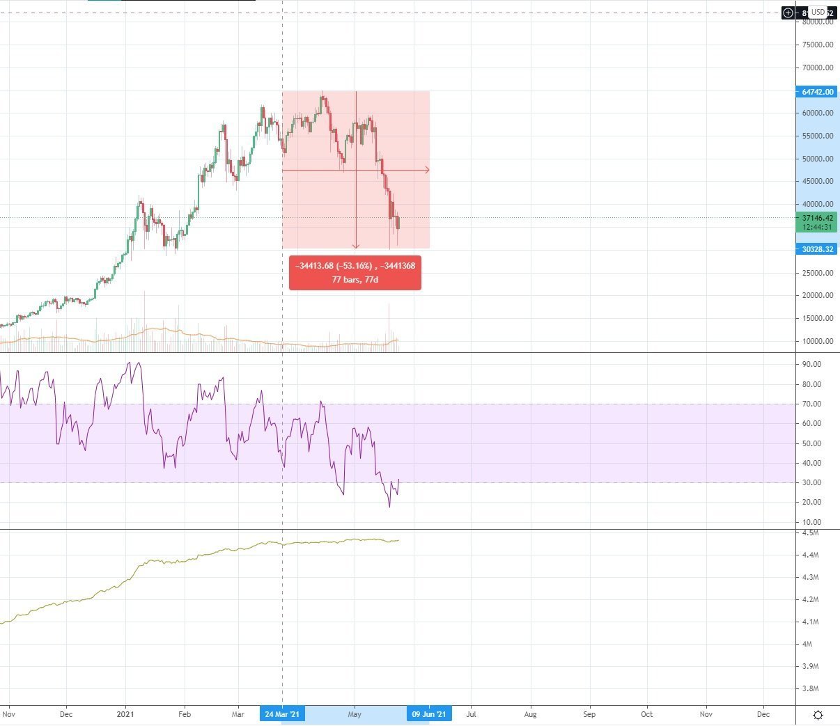 Fin de la bulle du bitcoin, c'est le moment d'en prendre demain je pense.Dans tout les cas c'est un bon moment pour racheter mais les vrais achètent tout les mois un peu et utilisent les intérêts composés pour atteindre le million