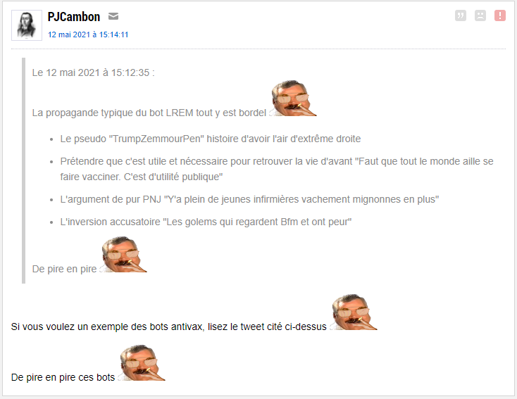 Si vous voulez un exemple des bots antivax, lisez le tweet cité ci-dessus