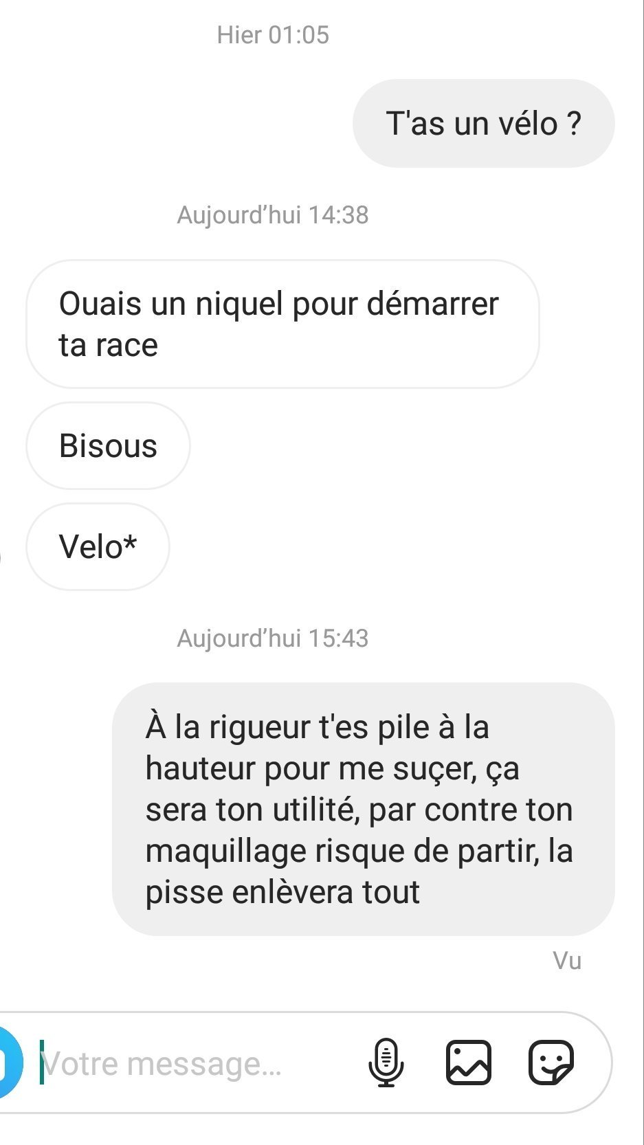 C’est une conversation avec ta cousine la salope babtou en manque de bite maghrébine