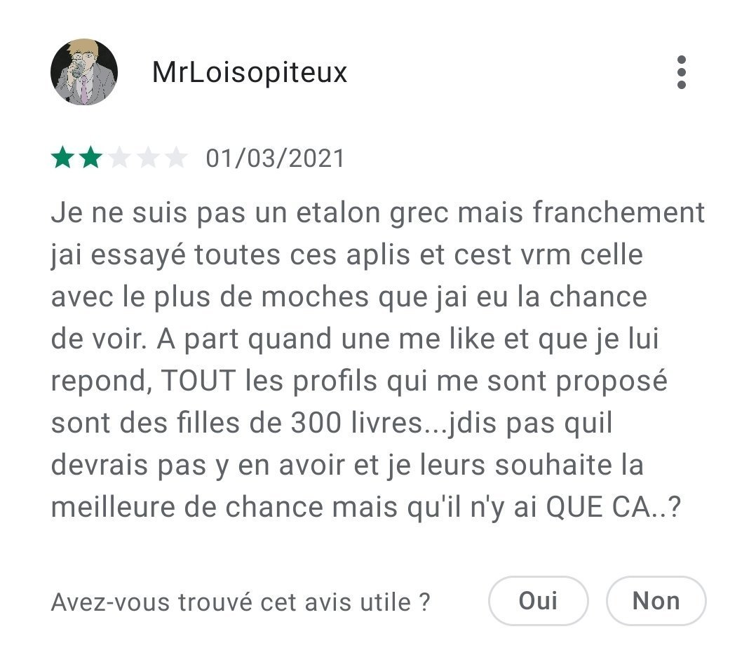 Mais là c'est qu'elle a du en essayer 4 5 des applis de rencontre avant de tomber sur celle-là
