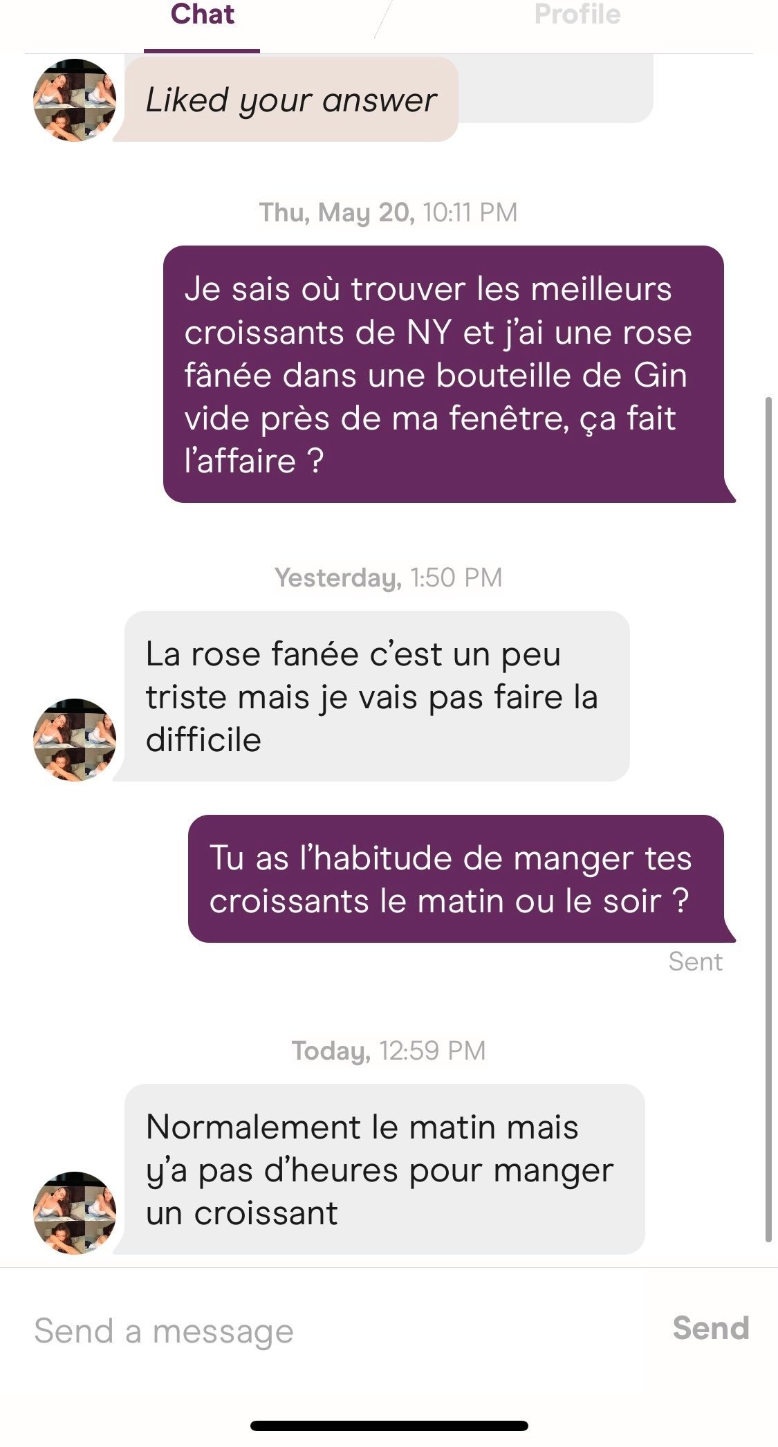 En fait sur Hinge on a le bug Tinder inversé j’ai l’impression
