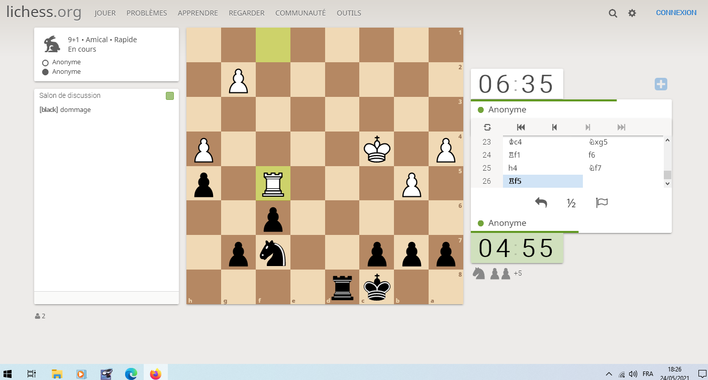 Le 24 mai 2021 à 18:25:12 :Le 24 mai 2021 à 18:24:35 :Le 24 mai 2021 à 18:24:00 :mdr t'as quitté ? noobAAAAAAYA mytho mdr c'est pas moiJe suis ici : https://lichess.org/6m1iBOOi