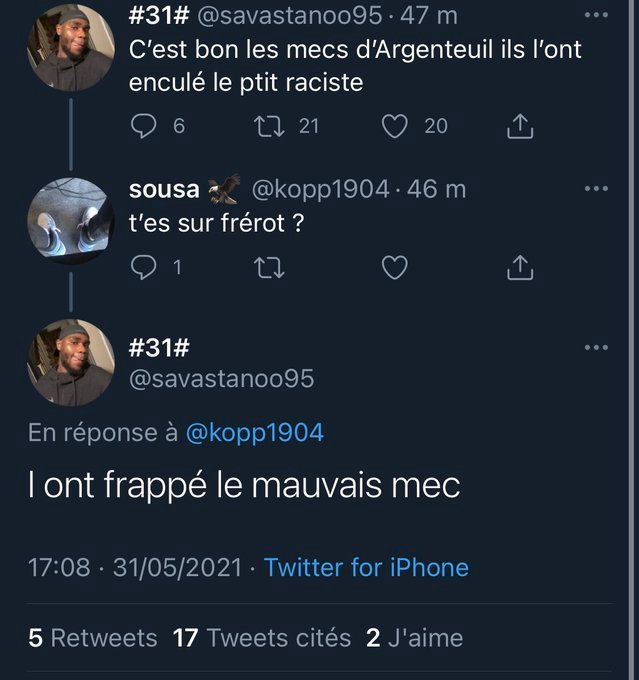 Le 31 mai 2021 à 18:44:00 Lameromodo69 a écrit : ils ont frappé le mauvais mec