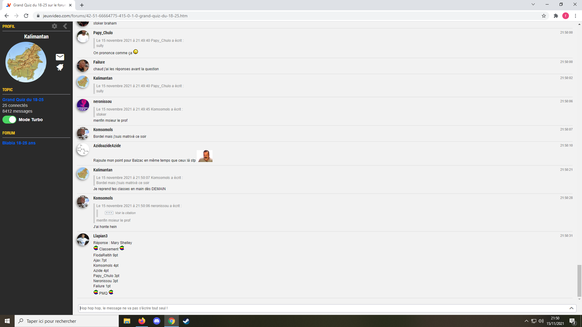 Le 15 novembre 2021 à 21:52:15 neronissou a écrit :Le délire ets aussi immortel que Risitas