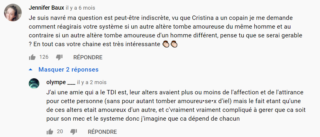 Encore elle avec ses mensonges. Bon mais c'est pas possible. Le fameux troubles dissociatifs de l'identite a ec une meuf sans aucun soucis, qui post sur youtube, qui reprend le contrôle comme elle veut, où tous sont ultra développé... Comme dans...Split. APparition de sa chaîne ? Peu de temps après la sortie du film sur NetflixDu coup certains ados perdus vont se mettre dedans et s'incenter des troubles. C'est dangereux