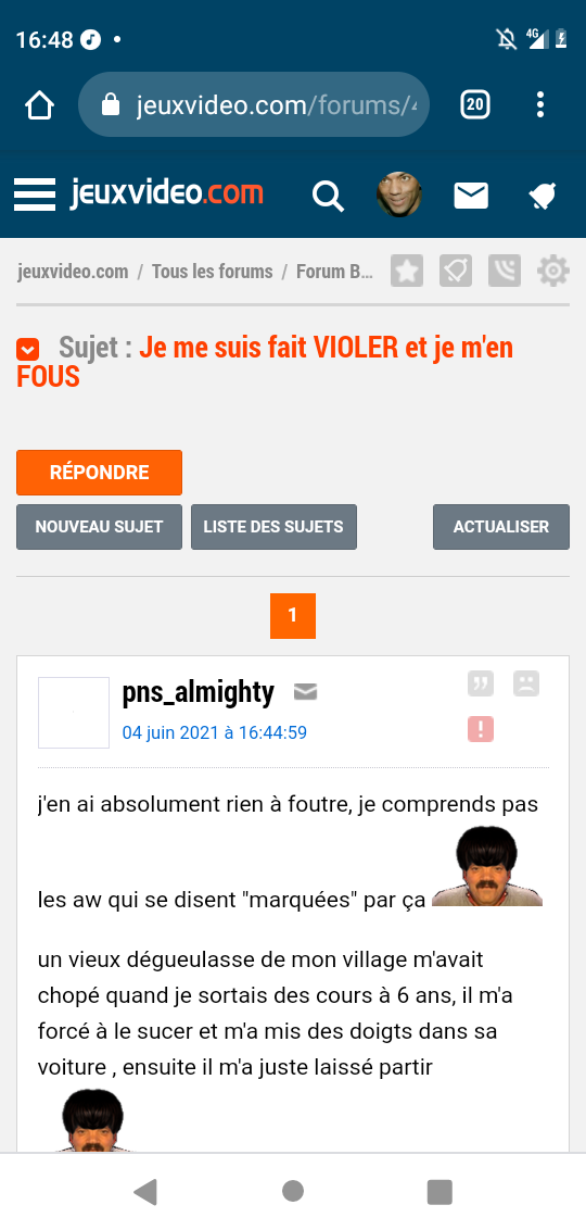 sur jvc avec l'identité PNS, je suis un drogué de longue date, bisexuel, surdoué et autiste