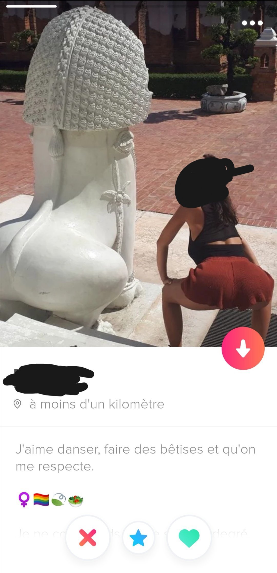 C’est donc vraiment représentatif des femmes françaises en 2021 ? Il y en a donc plus aucune qui se respecte un minimum et qui a des valeurs ?Sur tinder? Aucune est respectable