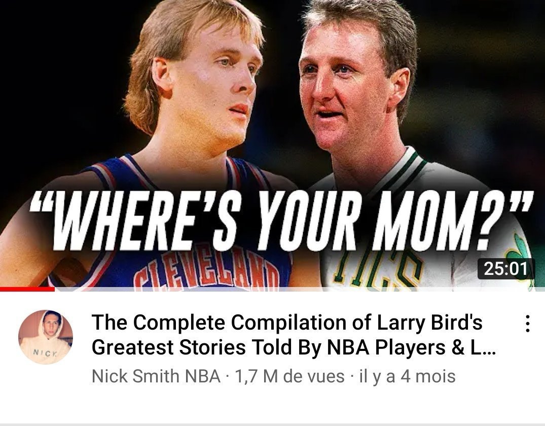 Je le trouve beaucoup plus incroyable que Jordan il était ouf ce typeJordan a pompé tout son trashtalking et comment rentrer dans la tête de son adversaire sur Larry bird