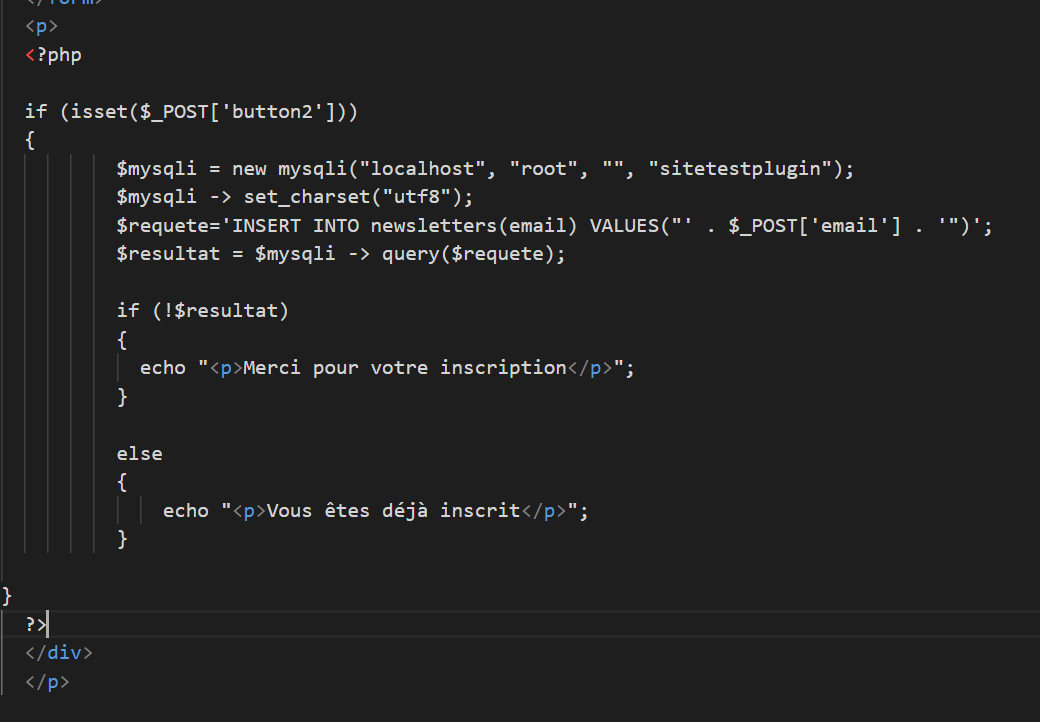 - Rajouter une contrainte "UNIQUE" sur ton champ email de ta table newsletter