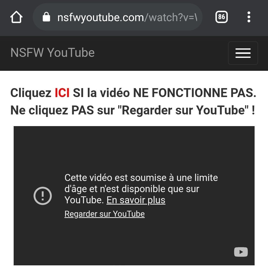 tu rajoute "nsfw" avant youtube dans l'URLJ'ai déjà essayé ça marche pas