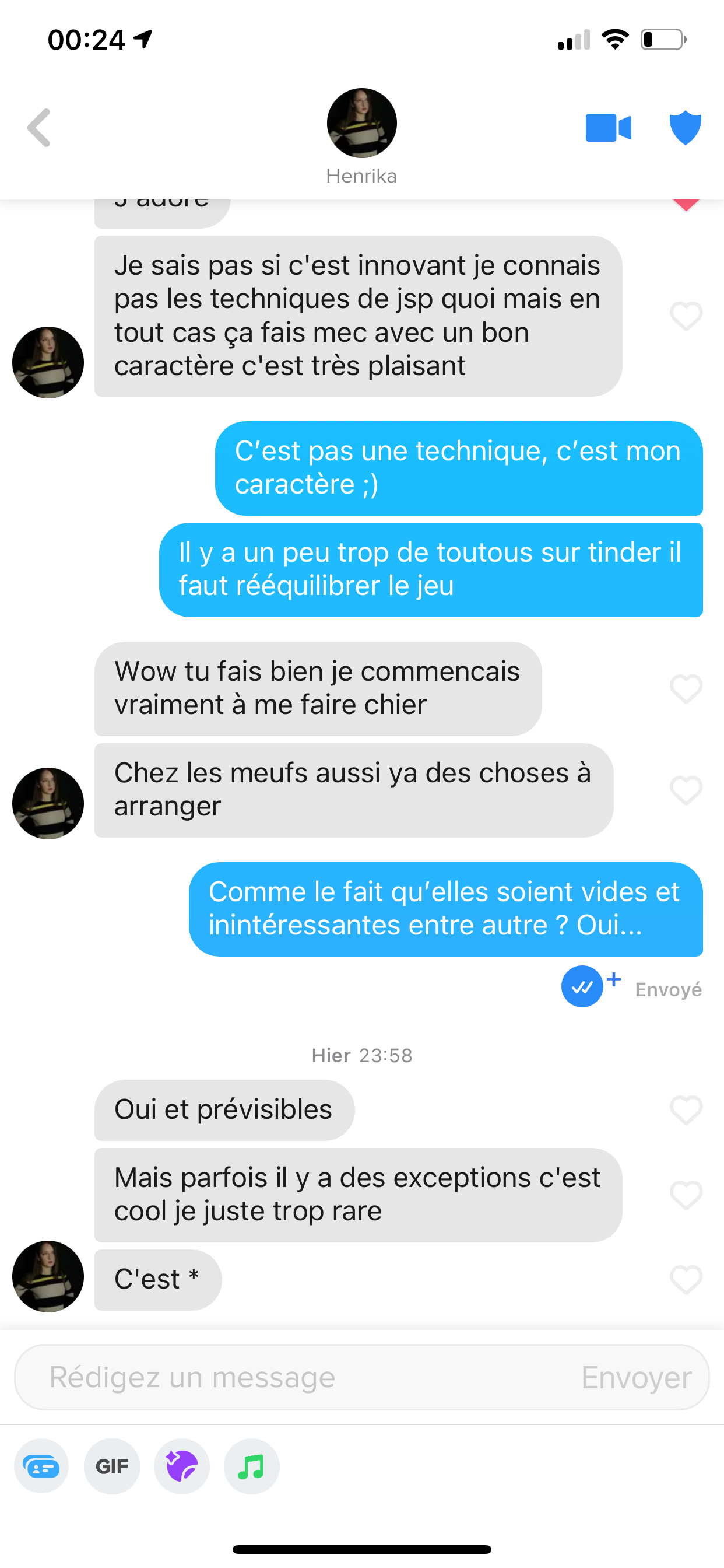 Le 16 juin 2021 à 00:38:29 :Dur de répondre à un simple bonsoir sans contexte ou bio ou photo pour engager la conversation rey