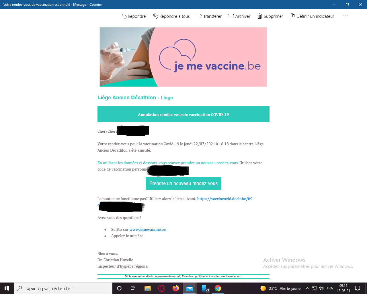 Bordel j étais déjà pas pour me faire piquer Mais bon je me suis dis allez fais le quand même je m inscris pour un rendez-vous et 1 semaine plus tard ont me dis que mon rendez-vous est annulé