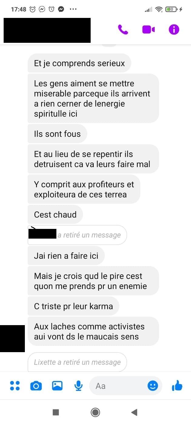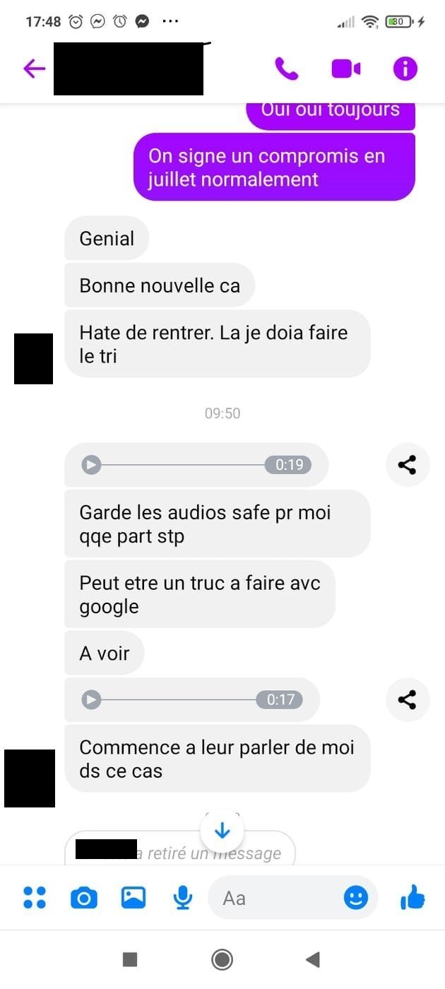 C'est elle même qui me dit qu'elle a besoin d'aide car elle est persécutée, jusqu'à maintenant je croyais que c'était vrai car elle m'envoyait des videos de son appart à moitié saccagé avec des pots de fleurs pétés sur son balcon