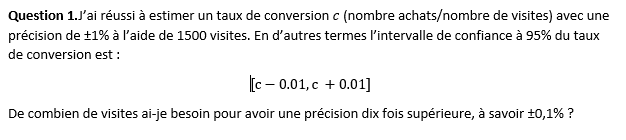 Le 26 juin 2021 à 18:57:25 :La precision est en a/racine(n) si tu veux avoir 10 fois plus de precision il faut 100 fois plus d'individus