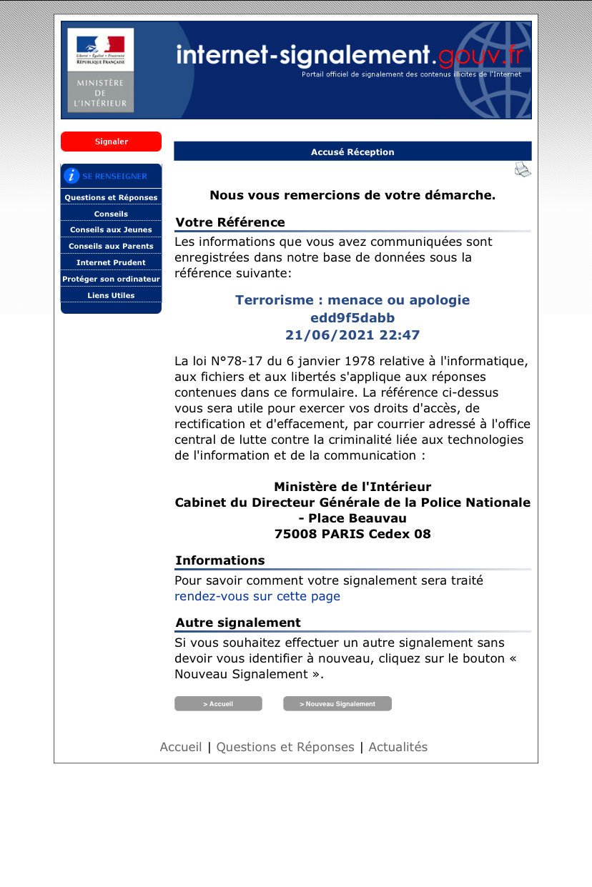 Par contre ceux qui disent "il est canadien" les trucs genre terrorisme c'est transmis aux autorités du pays, et vu que c'est un déchet taré, il va se faire emmener par les blouses blanches direction l'HP et le gavage de médocs