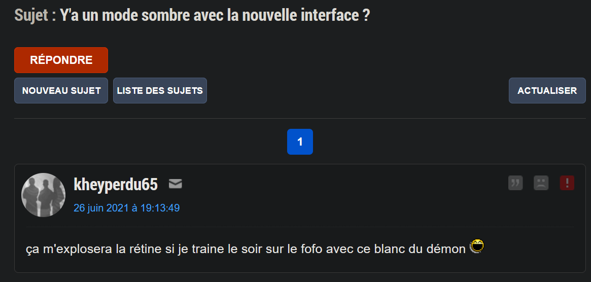 Malheureusement à ma connaissance il n'y a pas de mode sombre sur ce site