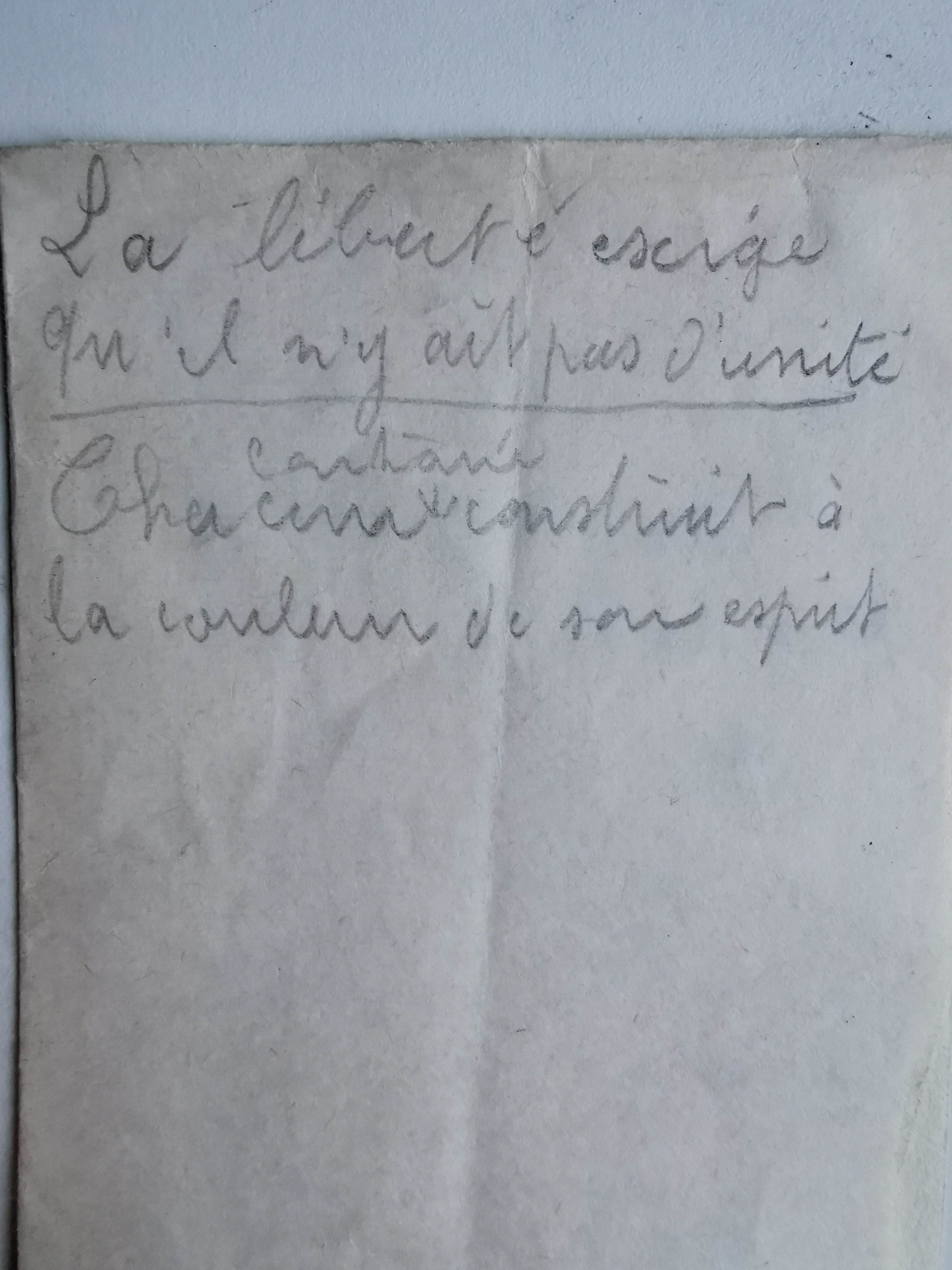 La liberté exige qu'il n'y ait pas d'unité.Chacun [...] construit à la couleur de son esprit.
