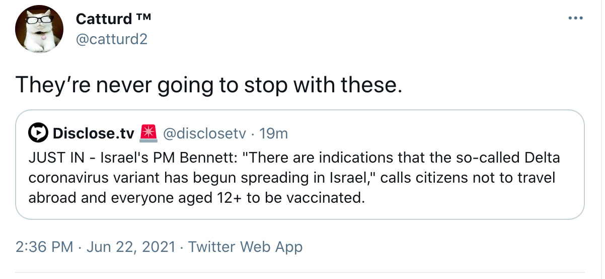 Jamais de la vie ils reconfineront aussi tôt alors que des millions se font vacciner tous les jours, et qu'ils ont retiré tout port du masque + couvre feu avant même la date fixée initialement