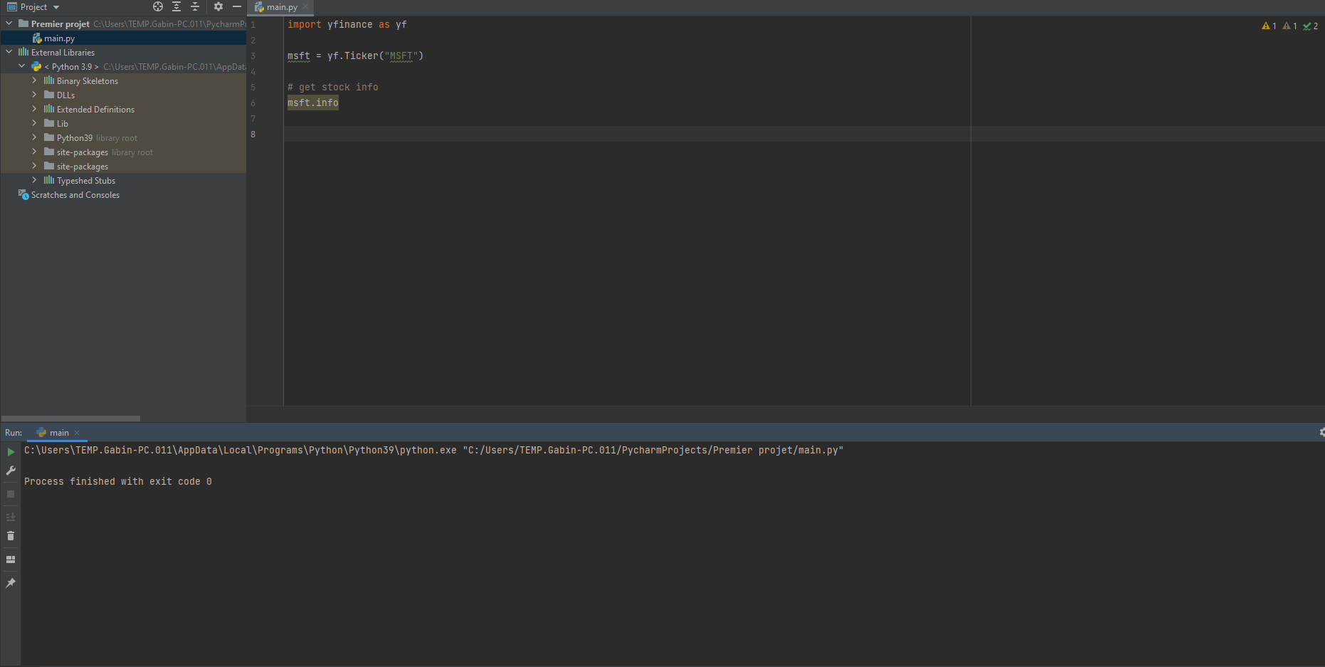 Est-ce normal sur Pycharm d'avoir comme seul sortie : Process finished with exit code 0 ??C'est censé me sortir un tableau...