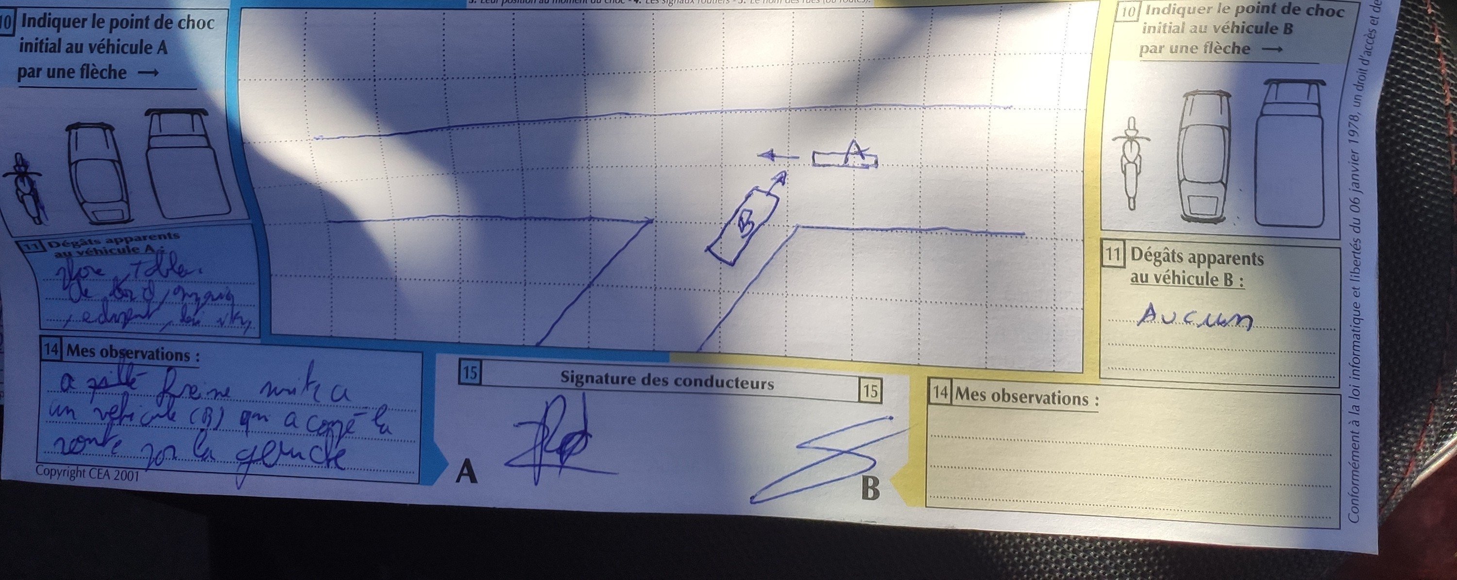 J’espère que tu l’as bien rempli ton constat. Une fois un mec m’est rentré dedans en me doublant par la droite et ils ont estimé que j’en lui avais coupé la route.