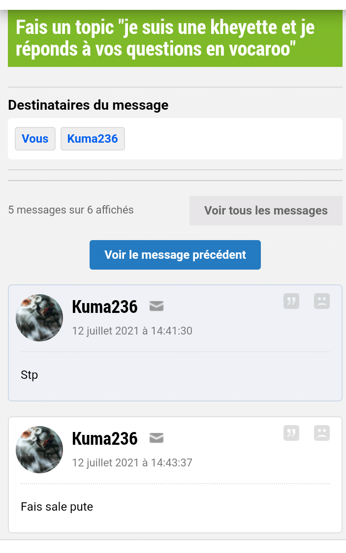 Elle a du recevoir 150 MP de mecs qui on la dalleAprès t'es malaisante mais c'est pas moi qui vais te MP pour t'insulter