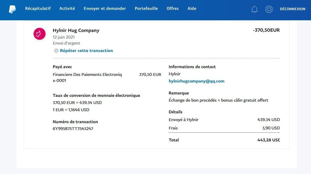 Évidemment avec grand plaisir, virement effectué PP F&F+