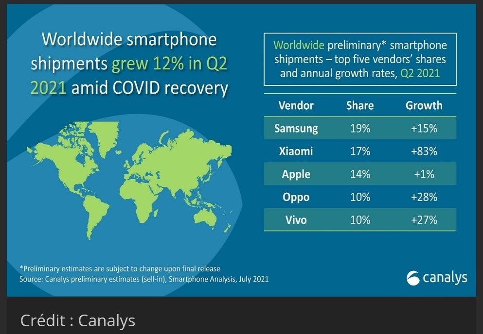 https://www.phonandroid.com/xiaomi-depasse-apple-et-devient-le-deuxieme-fabricant-de-smartphones-au-deuxieme-trimestre-2021.html https://www.noelshack.com/2021-28-5-1626425272-img-20210716-104653.jpg plus qu'à espérer qu'ils ne sortent pas de tel au prix d'un SMIC dans les jours à venir