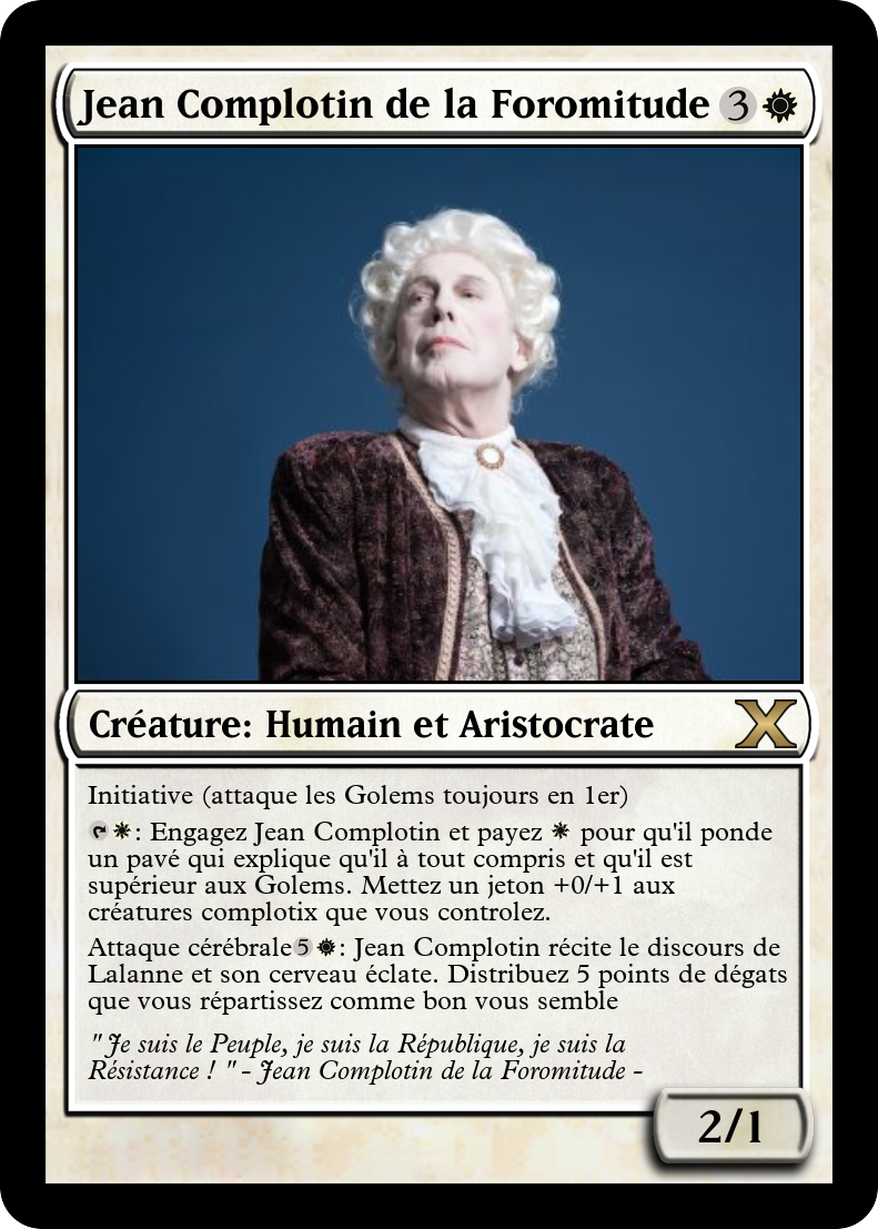 Pour commencer le Deck Complotix, je vous présente Jean Complotin de la Foromitude