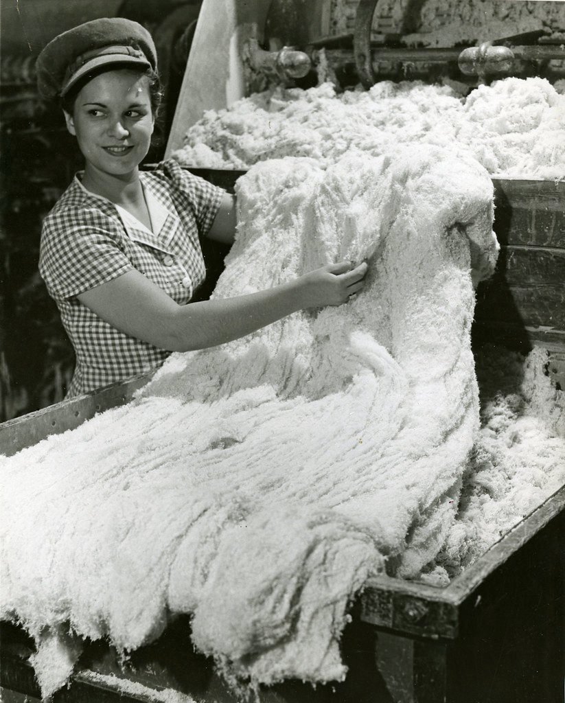 Ouvrière qui travaillait avec l'amiante, sans aucune protection car c'était el famoso pas nocif :